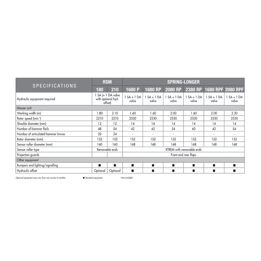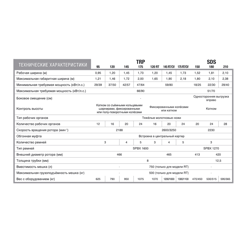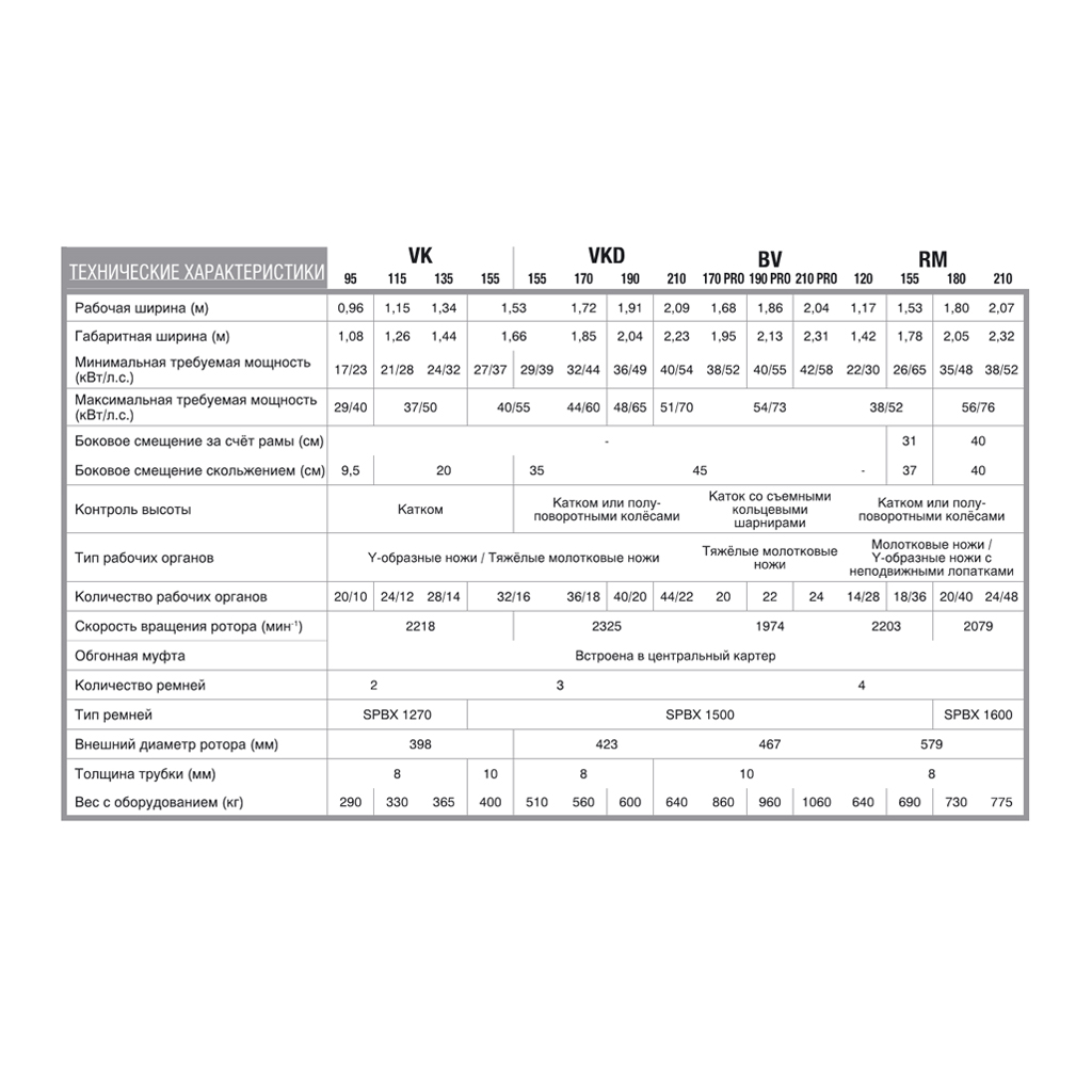 – RM 240, RM 280, RM 320, RM 400, RM 480, RM 610 – ефективно подрібнюють пожнивні залишки, такі як стебла зернових культур, соняшнику чи кукурудзи, і підходять для догляду за пасовищами та луками. Однак, основною сферою їх застосування є зернові господарства