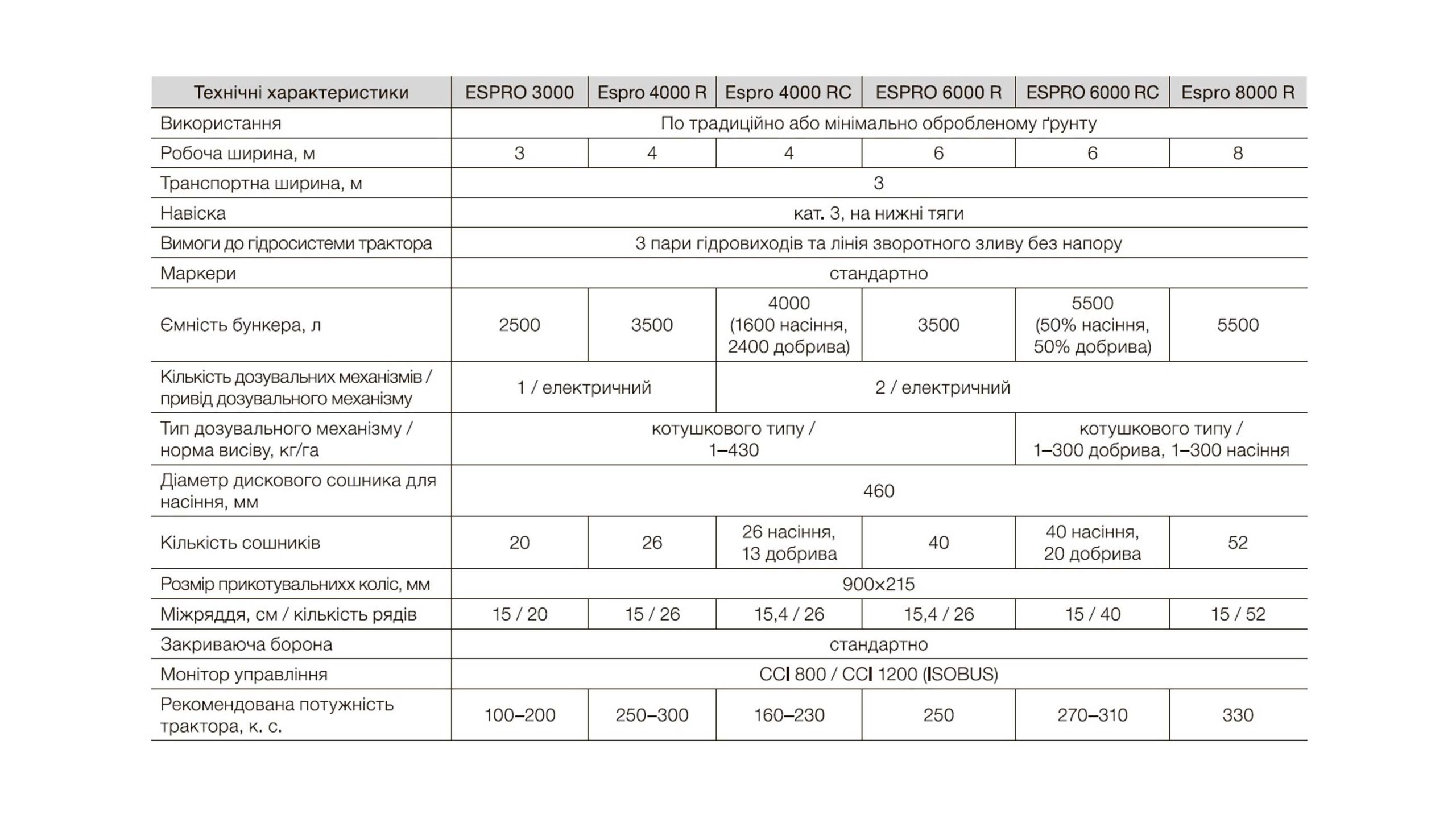 Універсальні сівалки, які використовуються для посіву зернових культур, трав і травосумішей. Працюють при мінімальній обробці грунту і по стерні на всіх видах полів, широко і рівномірно розподіляючи насіння. Чинять слабкий тиск на грунт, забезпечують однакову глибину внесення насіння.