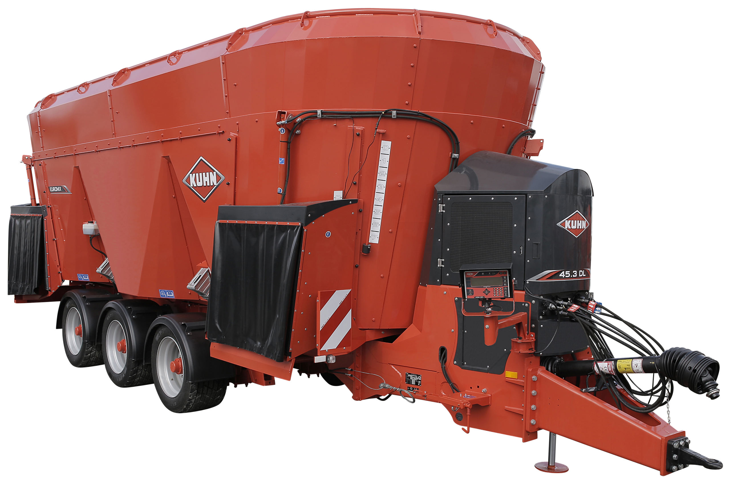 Компанія КУН розробила модельний ряд кормозмішувачів EUROMIX, спираючись на міжнародний досвід конструювання, розробки та реалізації причіпних змішувачів-роздавачів для повного раціону кормів, що відрізняються такими характеристиками: