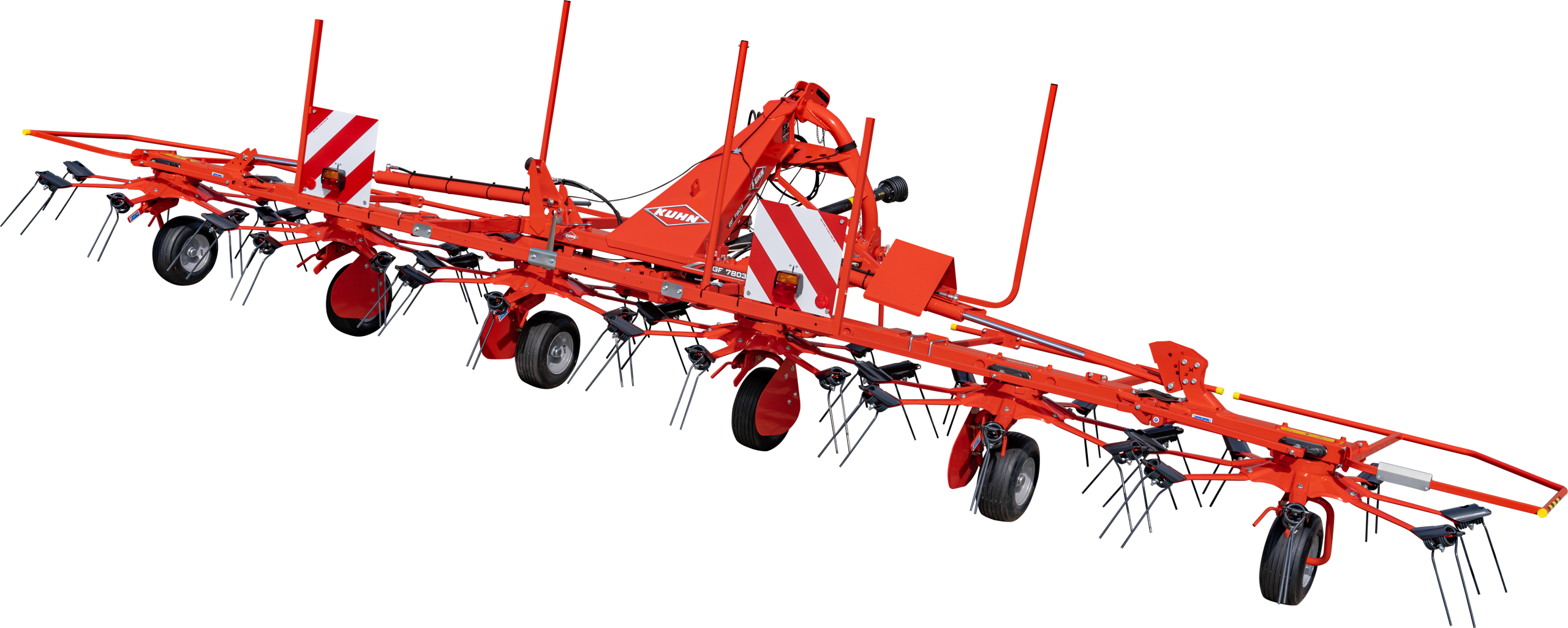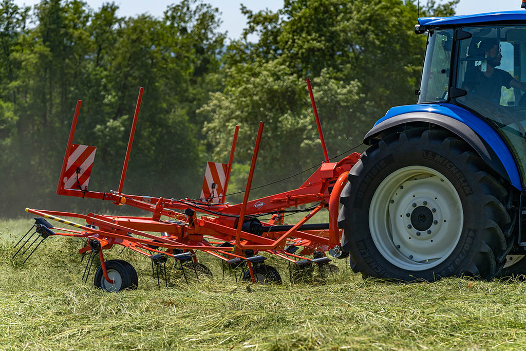 Наприклад, серія сіноворушилок KUHN GF, оснащені роторами з гнучкими зубцями, які дозволяють ефективно розподіляти матеріал і підвищують продуктивність сінозаготівлі.